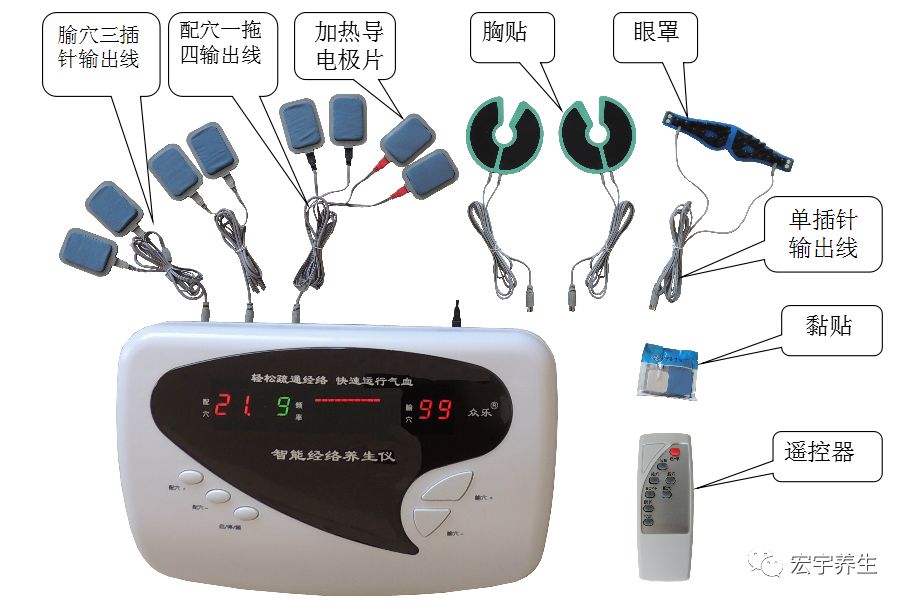 众乐智能型腧穴电疗仪器是宏宇的另一个品牌仪器。这款仪器除具有六大特点十大功能外还具有外观新颖 并配有八个极片,两个人同时做疗时,每个人都可以同时用四个极片。